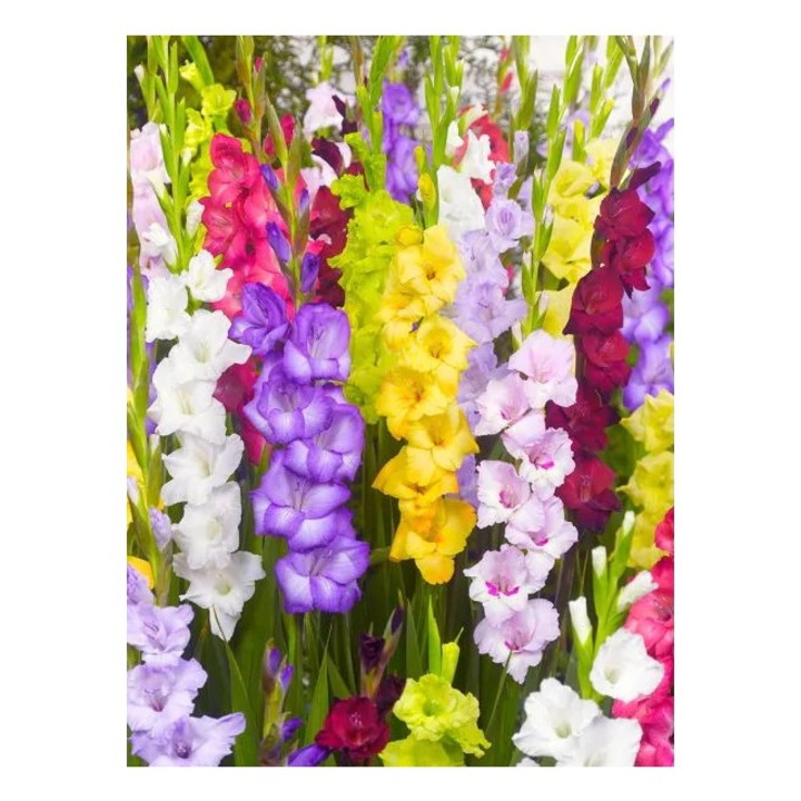 Pachetul Gladiolus Mix este conceput special pentru cei care doresc o grădină dinamică, plină de surprize cromatice. Acest amestec conține 10 bulbi (cormi) de calitate, care vor produce inflorescențe spectaculoase într-o varietate largă de nuanțe: de la roșu intens, galben solar și portocaliu vibrant, până la roz delicat, violet regal sau alb imaculat. Diversitatea acestui mix asigură un aspect natural și vesel, fiind ideal pentru borduri mixte sau straturi de flori de vară.