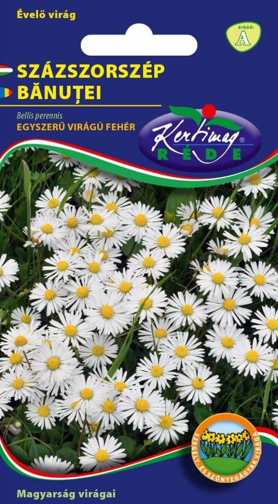 Bănuței albi cu flori simple, ambalaj 0.25g Kertimag. Flori delicate tip margaretă, de talie mică, ideale pentru decoruri rustice, gazon și borduri. Soi foarte rezistent la frig, cu înflorire timpurie și aspect natural.