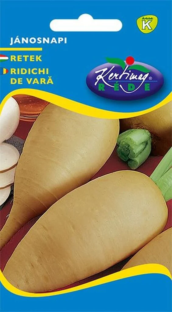 Ridichi de luna Janosnapi, ambalaj 50g Kertimag. Soi timpuriu cu radacina rotunda, rosie si miez alb, foarte crocant. Rezistent la crapare si dospire, ideal pentru cultura de primavara in camp sau solar.