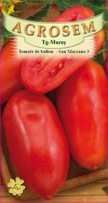 Tomatele San Marzano 3 de la Agrosem Targu Mures reprezinta selectia profesionala a celebrei varietati italiene, recunoscuta la nivel mondial ca fiind "regele rosiilor pentru sosuri". Acest soi este indispensabil oricarui gradinar care doreste sa prepare in casa bulion, pasta de tomate sau sosuri pentru pizza si paste de o calitate superioara.