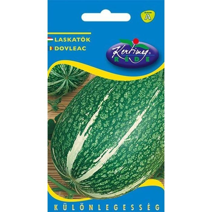 Semințe de dovlecel, soiul Laskatok, ambalaj 2g Kertimag. Soi semitimpuriu, productiv, cu fructe cilindrice verde-deschis. Ideal pentru gătit, având o pulpă albă, densă și gustoasă.