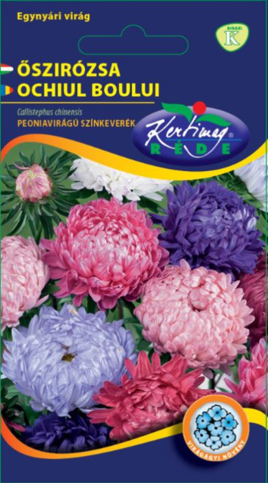 Ochiul boului (Callistephus chinensis) din varietatea Peonia de la Kertimag este una dintre cele mai spectaculoase flori anuale pe care le poti cultiva in gradina ta. Acest soi se remarca prin inflorescentele sale extrem de bogate, cu petale late si incurbate spre interior, formand globuri dense si pufoase care imita perfect aspectul bujorilor. Amestecul ofera o paleta cromatica rafinata, incluzand nuante de roz delicat, rosu intens, albastru, violet si alb imaculat. Planta atinge o inaltime de 50-60 cm si are un port erect, bine ramificat, sustinand cu mandrie florile mari si grele. Ochiul boului Peonia este faimos in randul decoratorilor florali pentru rezistenta sa uimitoare in vaza, fiind floarea ideala pentru buchete de vara tarzie si toamna. Cu o inflorire generoasa ce incepe in iulie si dureaza pana la venirea primelor brume, acest soi aduce un plus de eleganta si volum oricarui strat de flori sau aranjament peisagistic.
