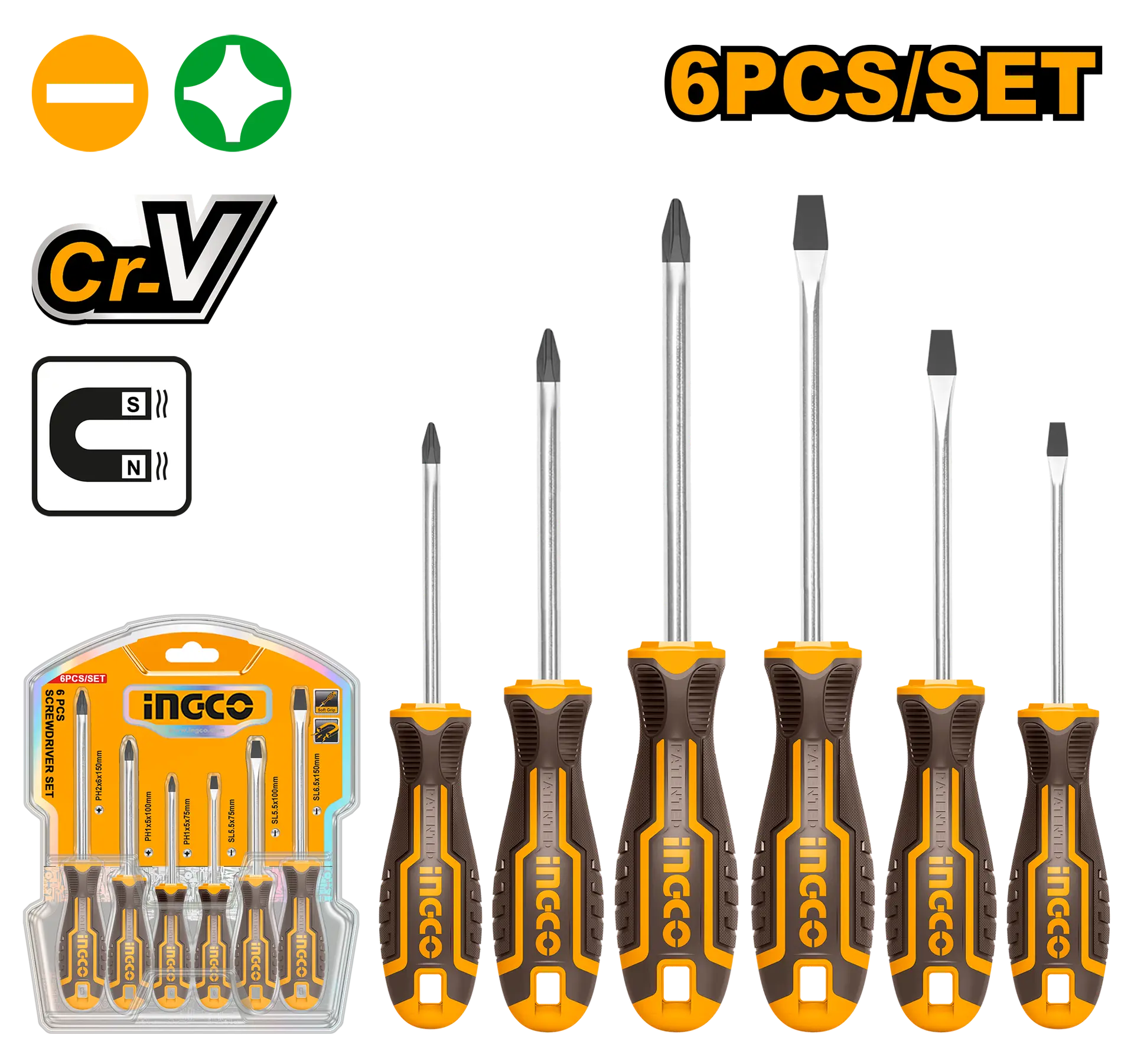 Set de surubelnite cu maner cauciucat, antialunecare, 6 bucati – INGCO