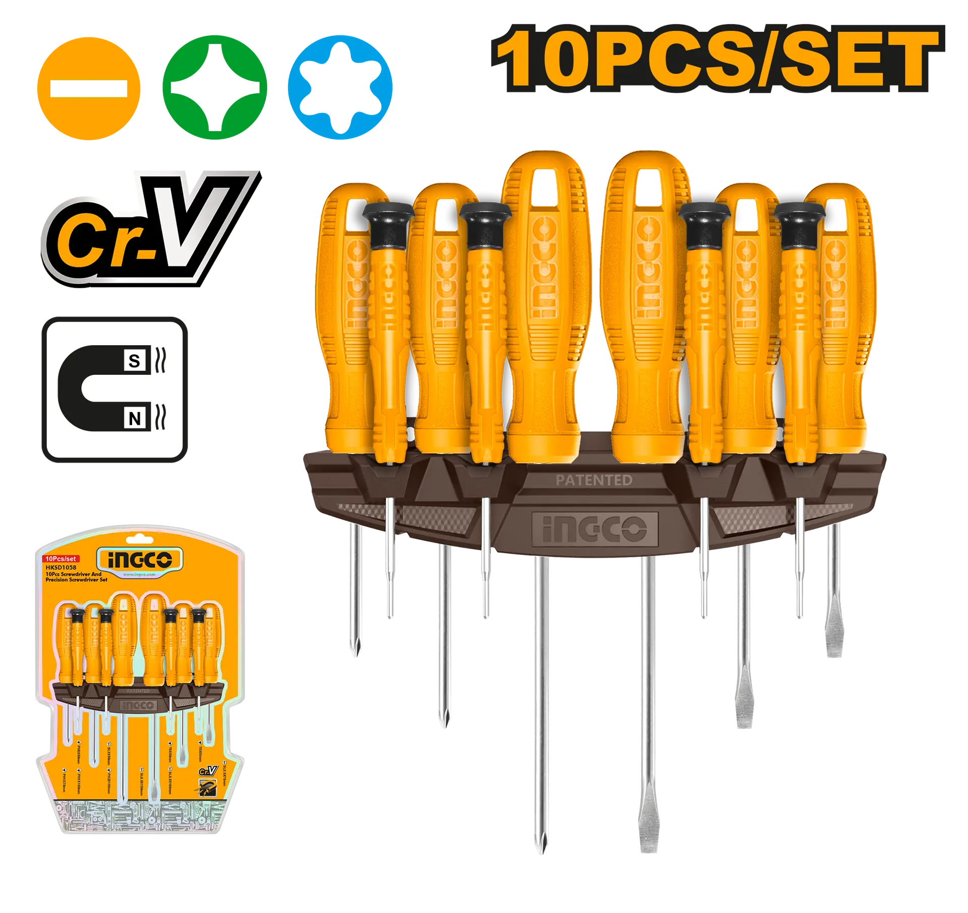 Set de șurubelnițe din 10 piese cu 4 șurubelnițe de precizie, confecționate din oțel crom-vanadium;